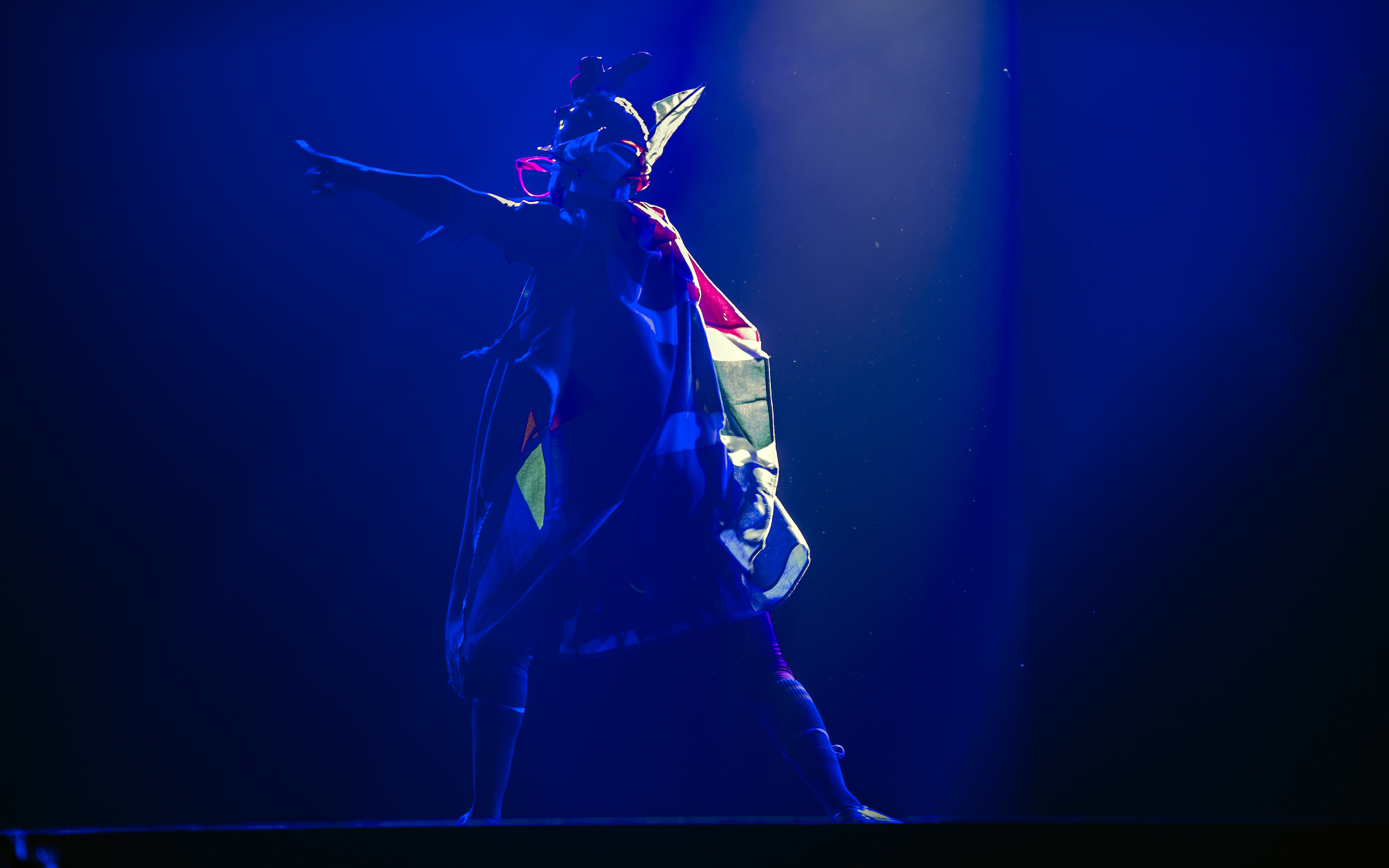 The opening AV introduced the audience to the "stadium-environment" with a wrap-around, 9-screen blend -Setting the scenes for the immersive, live show design to come...